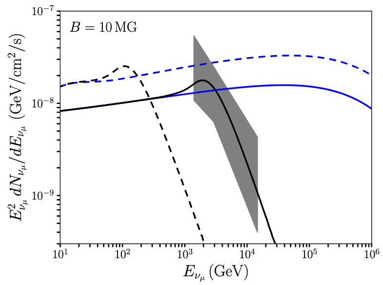 IceCube Observations have detected a bright 1-10 TeV neutrino flux from NGC 1068, while gamma-ray observations have not detected a corresponding TeV gamma-ray flux. These observations indicate that the neutrinos are produced in extreme dense regions where the gamma-rays are attenuated. The soft gamma-ray spectrum of the NGC 1068 neutrinos has previously been interpreted as evidence that the protons that produce the neutrino spectrum are only accelerated to energies between 100-1000 TeV, and the soft neutrino spectrum corresponds to the exponential cutoff of the parent proton population. We propose an alternative hypothesis, where extremely strong magnetic fields in the dense acceleration region cause the muons and pions that produced directly via hadronic interactions to cool before decaying into the resulting neutrino signal. Such a scenario would explain the soft neutrino spectrum even in models where NGC 1068 accelerates protons to energies above a PeV. Notably, this scenario produces a different neutrino flavor ratio than a spectral cutoff, a robust signature that may be detectable with future neutrino telescopes.